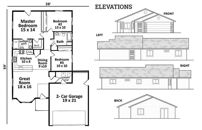 The Castello floor plan boasts great vaulted ceilings with 1277 sq. ft. living space! The large bedrooms are located away from the main living area to ensure privacy and relaxation time. The master bedroom offers a great walk-in closet and private bathroom with access to the outside patio. The open-concept floor plan between the kitchen, dining room and living offers plenty of natural flow through the house. With bar height counter tops there is plenty of room and options for having meals. This plan offers an oversized 2 car garage with extra storage for your needs.