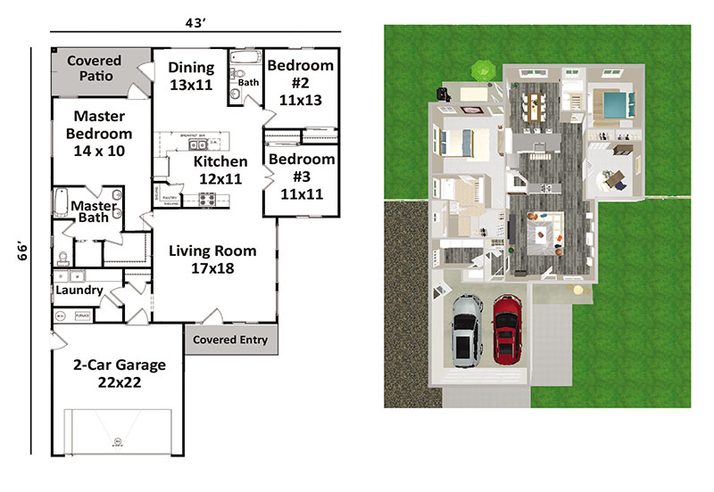 The La Rosa floorplan offers sight lines all the way through the house, from the covered front door to the backyard, creating an open and airy feel with 9‘ ceilings throughout. The split floorplan has easy access to the Master Suite from the living area which creates a private feel and has it‘s own door to the covered back patio – as well as a 5 piece bathroom including a tiled shower, private commode room, large walk-in closet and double vanities. The living area features lots of natural light with plenty of windows and a kitchen that lends itself to entertaining. The long peninsula offers seating and a workspace, while a corner pantry stores all of your supplies. Enjoy a casual dining room, with access to the back patio for ease of grilling and chilling. 2 additional bedrooms, one of which has double doors and can function as an office. The coat closet is located between the entry from the garage and the main entry so it serves both entries. The laundry room has space for a folding table and cabinets plus a storage closet!