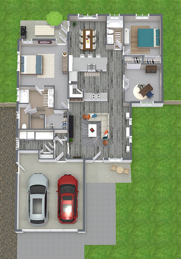 The La Rosa floorplan offers sight lines all the way through the house, from the covered front door to the backyard, creating an open and airy feel with 9‘ ceilings throughout. The split floorplan has easy access to the Master Suite from the living area which creates a private feel and has it‘s own door to the covered back patio – as well as a 5 piece bathroom including a tiled shower, private commode room, large walk-in closet