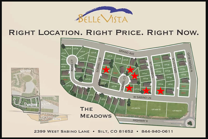 BelleVista offers an exceptional combination of friendly, affordable small-town living along with a breathtaking location within the grand expanse of the Colorado River Valley. Easily accessible by Interstate 70, and just 19 miles from Glenwood Springs. It’s also within 60 minutes of premier ski towns; Aspen, Snowmass, Beaver Creek and Vail, Colorado.